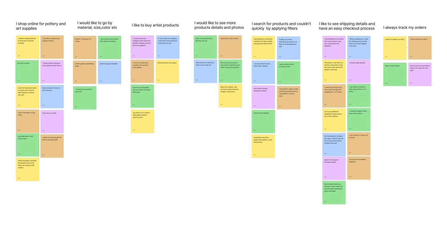I interviewed 4 users who frequently buy pottery from local gallery. It helped me understand their motivations, priorities and how it influences the choices they make.