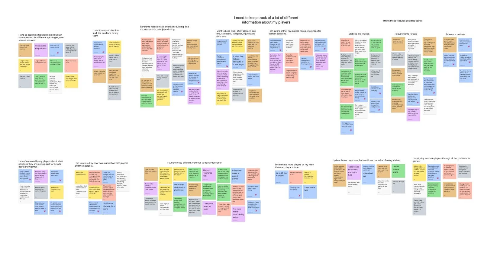 We interviewed 9 users. All users were soccer coaches, coaching recreational youth soccer teams of different age groups. Users provided artifacts - like spreadsheets - they are using for manual tracking, which was very useful in understanding the requirements.